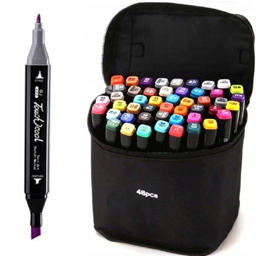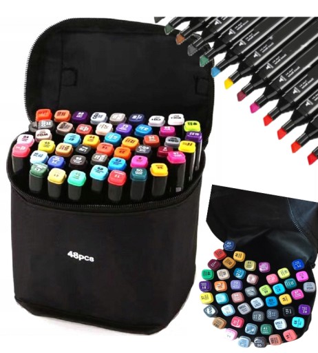 АЛКОГОЛЬНЫЕ МАРКЕРЫ, ТРИПСЫ, МАРКЕРЫ, ДВУСТОРОННИЕ МАРКЕРЫ, НАБОР 48 ШТ. + СУМКА