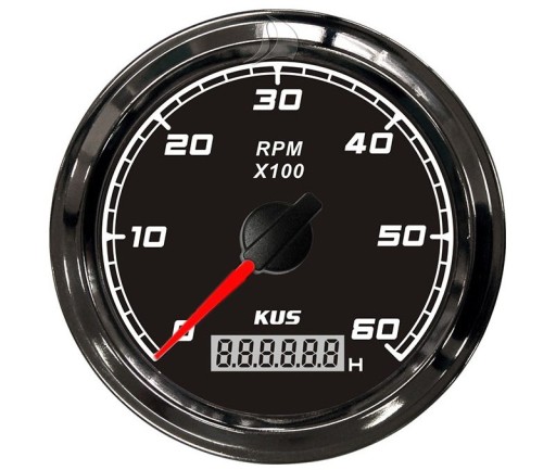 Wysokiej jakości obrotomierz z licznikiem motogodzin. Wykonany z wytrzymałego tworzywa i wykończony czarną ramką ze stali nierdzewnej AISI 316. Całkowicie wodoodporny. Posiada dwa kolory podświetlenia tarczy, czerwony i żółty. (podłączamy wg. gustu). Półokrągła szybka, czarna tarcza i ramka. Przy napięciu 24V niezbędne jest podłączenie rezystorów (w komplecie). Produkt nowy, oryginalnie zapakowany.