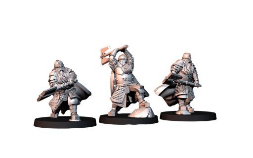 Kalak Dwarves - King Guard 3 Pozy - LOTR MESBG Middle Earth - Figurka RPG - Druk 3D - Davale Games - 3D Monkey