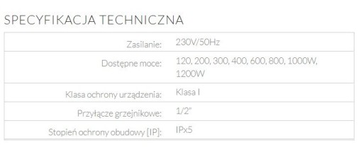 - FUNKCJONALNOŚĆ - Grzałka oferuje pięć ustawień temperatury grzejnika w zakresie od 30°C do 60°C (istnieje możliwość zmiany zakresu temperatur). Elektroniczny czujnik w grzałce pozwala na ich precyzyjne utrzymanie. Urządzenie prezentuje aktualny i nastawiony poziom temperatury. Charakteryzuje się bardzo niskim poborem prądu w trybie czuwania.