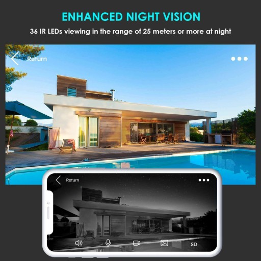 Systemy kamer bezpieczeństwa zewnętrznego firmy ieGeek wykorzystują drogi układ Hisilicon, który jest najlepszy pod względem przejrzystości i stabilności obrazu i wideo. 36 diod LED na podczerwień zapewnia wyraźniejsze widzenie w nocy. Najdłuższa odległość noktowizora może osiągnąć 25 metrów (82 stopy).