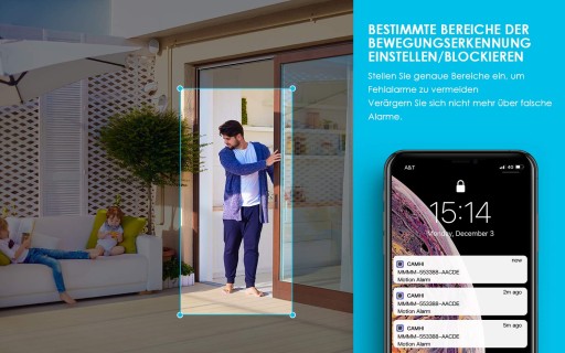 Zewnętrzne systemy bezprzewodowe kamer bezpieczeństwa obsługują ustawianie alarmów ruchu w określonych obszarach i godzinach, regulowaną czułość. Otrzymasz powiadomienie o ruchu w czasie rzeczywistym na swój telefon komórkowy lub wyślesz zdjęcia na e-mail. Oglądaj z dowolnego miejsca na komputerze, przeglądarkach internetowych i smartfonach (iPhone i Android).