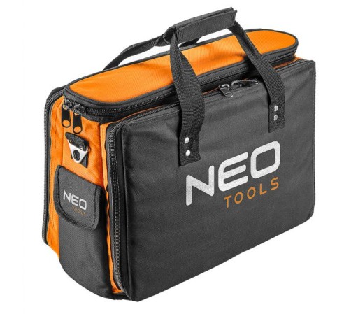 Torba monterska NEO (nr ref. 84-308) wykonana z poliestru 600 D, gwarantującego długą trwałość torby. Posiada usztywniane dno wraz z podstawkami, chroniące zawartość podczas pracy w trudnych warunkach. Torba wyposażona jest w mocny uchwyt oraz pasek do przenoszenia. Jej zaletą jest duża ilość kieszeni - 2 zewnętrzne oraz 17 wewnętrznych. W wielu przypadkach dedykowanych pod narzędzia ręczne ułatwiające ich przechowywanie i transport. 3 komory główne pozwolą na bezpieczne przenoszenie narzędzi jak i dokumentów. Marka NEO spełnia oczekiwania profesjonalistów.
