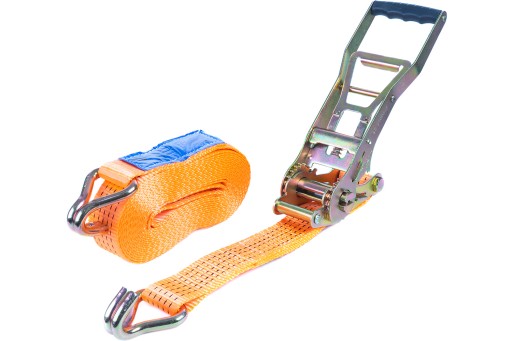 Pas transportowy ERGO czyli większy, wytrzymalszy napinacz z dłuższą dźwignią, która pozwala na uzyskanie lepszych parametrów naciągu taśmy, co za tym idzie, ładunek jest, mocniej dociśnięty do podłogi i tym samym skuteczniej unieruchomiony. Zastosowanie dłuższej dźwigni i mocniejszego napinacz pozwalają przy użyciu tej samej siły napiąć pas mocniej niż w standardowych pasach. Pas o najwyższej wytrzymałości oraz najdłuższy jaki posiadamy w sprzedaży w naszym sklepie. Długość całkowita pasa (czyli długość pasa oraz długość klamry łącznie) to aż 8 metrów, dzięki czemu można, nim zabezpieczać nawet bardzo gabarytowe ładunki. Szerokość pasa wynosząca 50 mm oraz jego wytrzymałość na poziomie 5 ton daje możliwość opasania nim nawet bardzo ciężkich towarów. Sprawdzi się przez to zarówno przy użytku profesjonalnym w firmach transportowych, na budowach ale również przy przewozach prywatnych. Wszystkie elementy metalowe w tym haki i grzechotka zostały wykonane z bardzo mocnej stali odpornej na korozję. Każdy element pasa transportowego jest zatem gotów do pracy z najwyższymi obciążeniami.