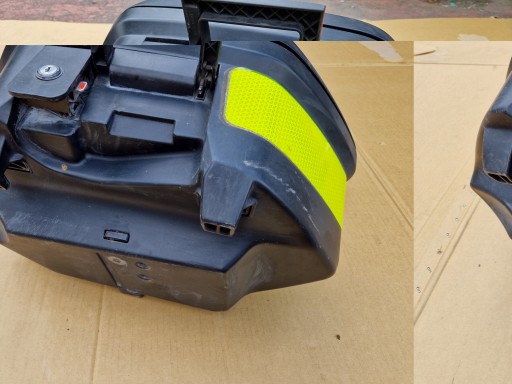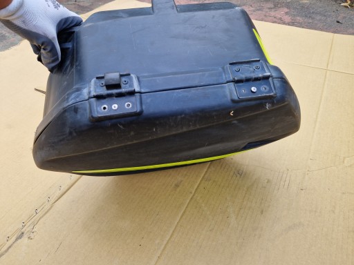 Yamaha TDM 900 // FJR 1300 // FZ6 kufer prawy, oryginał, wersja z płaską pokrywą, brak kluczyka, listek blokujący ok, naruszony plastik przy zamku jak na 3 foto, zamknięcie sprawne, przy zawiasach ok