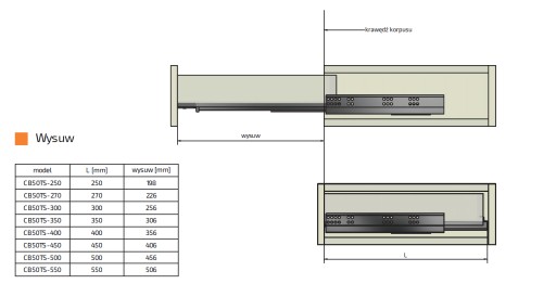 - cena dotyczy kompletu prowadnic ze sprzęgłami (na jedną szufladę)