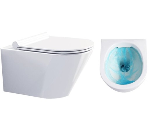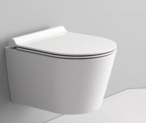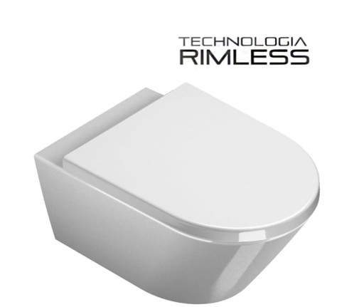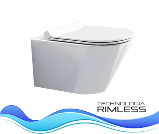 Muszla WC wykonana z ceramiki sanitarnej w kolorze śnieżnobiałym. Kształt misy pozwala na optymalne wykorzystanie przestrzeni, a innowacyjny systemem Rimless zapewnia funkcjonalność. W komplecie z muszlą dołączona jest deska do wyboru: wolnoopadająca slim lub standard.
