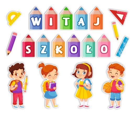 Gotowe - wydrukowane jednostronnie i wycięte elementy do stworzenia kolorowej dekoracji na początek roku szkolnego. Dekoracja idealna do powieszenia w sali na gazetkę szkolną lub na drzwi.