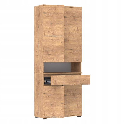 Górna część - nadstawka przynosi jeszcze więcej przestrzeni dzięki szafce z czterema poziomami oraz otwartej półce. Idealna do przechowywania butów lub ubrań. Górna część doskonale komponuje się z dolnym modułem, tworząc spójną i estetyczną całość.