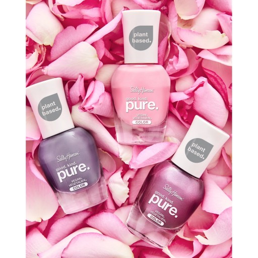 Opis: Pierwsze w 100% wegańskie lakiery do paznokci od Sally Hansen Good. Kind. Pure.™ Stworzone z miłości do natury lakiery oferują bogatą paletę barw i połysk bez kompromisów. Dostępne w 17 intensywnych kolorach. Aż 77% składników jest pochodzenia naturalnego, a wegański pędzelek idealnie współgra z nową formułą lakieru.