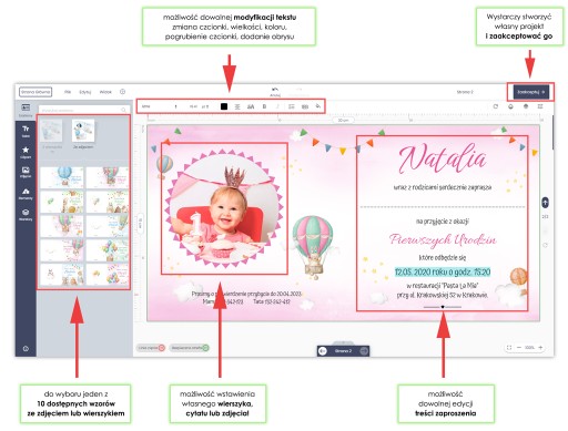 - Przed drukiem będą Państwo mogli stworzyć swój własny projekt zaproszeń
