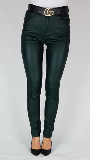 SPODNIE GOODIES WOSKOWANE BUTELKOWA ZIELEŃ Z WYSOKIM STANEM ROZMIAR 40