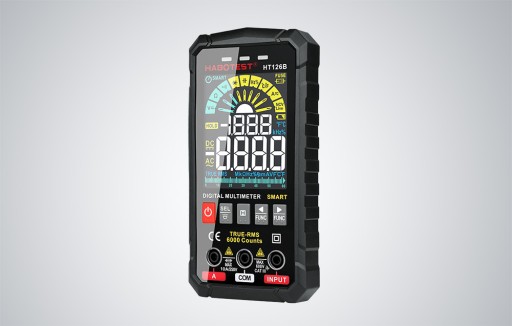 HT126B to inteligentny i wytrzymały multimiernik marki Habotest. Wyróżnia się precyzją pomiarów, możesz z niego korzystać również na zewnątrz. Wyposażony w duży, kolorowy wyświetlacz oraz silikonowe przyciski - jest prosty i wygodny w użytkowaniu. Kompaktowy i lekki - ma także latarkę LED, która umożliwia pracę również w ciemnych miejscach. Do jego zasilania potrzebne są 4 baterie AAA 1.5 V (brak w zestawie). Za jego pomocą dokonasz pomiaru napięcia, oporu, pojemności, itp.
