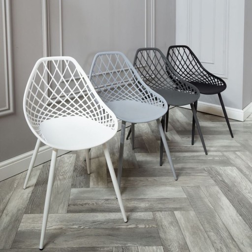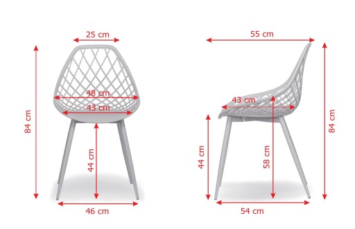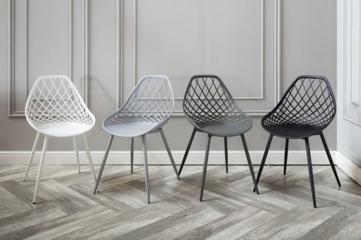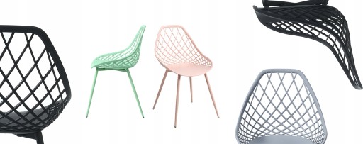 Ergonomiczny kształt kubełka krzesła odlany z jednej formy z ażurowym wycięciem na oparciu nadaje naszemu krzesło niebanalną formę a zarazem zwiewność i finezję w jednym. Pomimo wrażenia delikatnej formy atutem krzesła jest udźwig - 110 kg