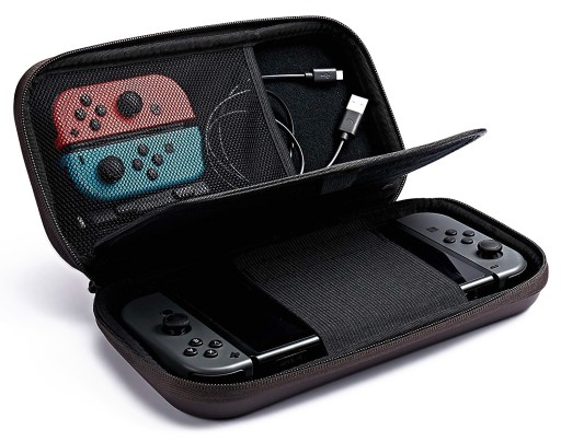 Etui jest idealnie dopasowane do Twojej konsoli Nintendo Switch i Nintendo Switch OLED - idealnie ją zabezpiecza. Wewnątrz posiada specjalne przegródki mieszczące aż 12 kartridży z grami. w górnej części futerału znajduje się specjalne miejsce na przechowywanie akcesoriów do konsoli takich jak ładowarka, powerbank, słuchawki, pudełka z gier, itd. Pokrowiec posiada także praktyczną rączkę do przenoszenia.