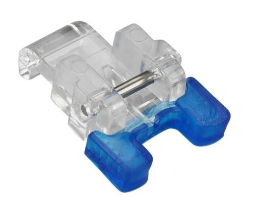 Stopka ułatwia przyszycie guzika do materiału. Zastosowanie gumowych wypustek pomaga stabilnie przytrzymać guzik podczas szycia.