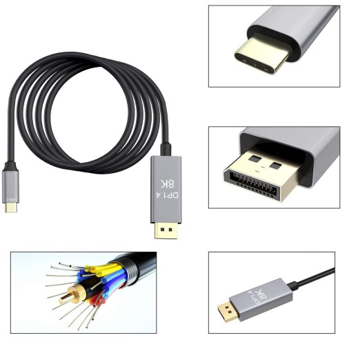 Kabel USB typ C USB-C 3.1 do DisplayPort 1.4 o długości 1,8m.
