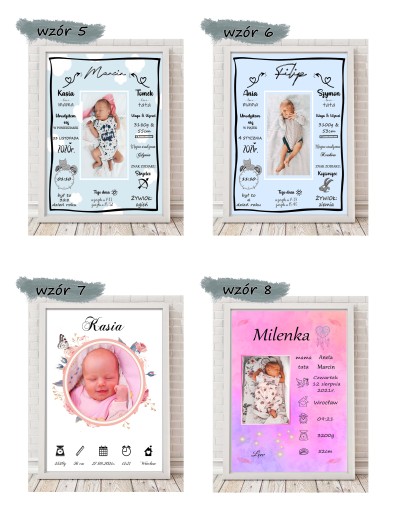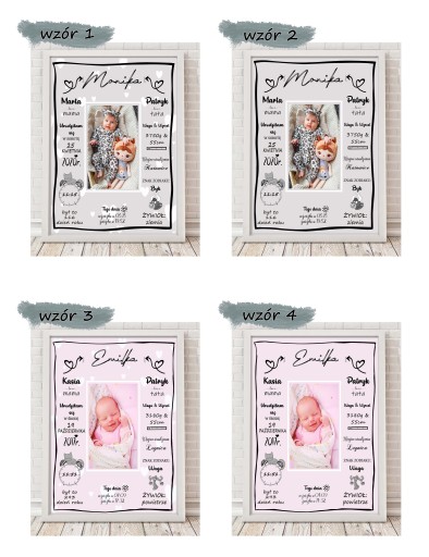 Spersonalizowana METRYCZKA ZE ZDJĘCIEM A4 (20x30) - wzór 11 + RAMKA (biała lub czarna)