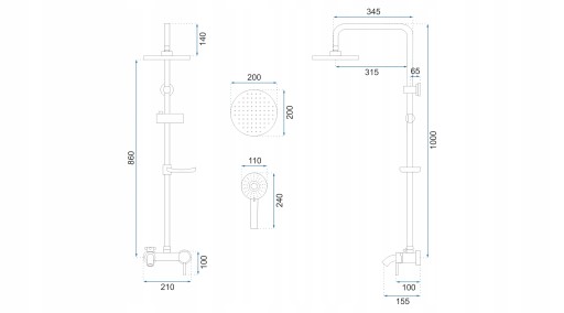 - Skład zestawu: Bateria, wąż prysznicowy ze słuchawką, deszczownica