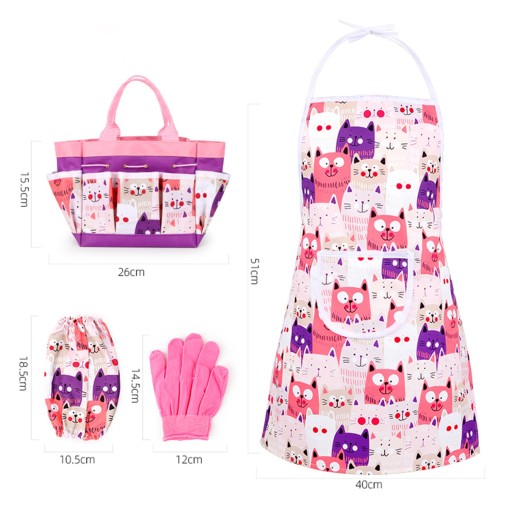 The all-in-one gardening kit includes shovel, water can, sleeve, apron, handbag, etc. Children can easily find gardening tools.