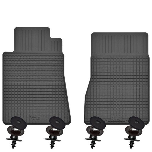 Do każdego przedniego dywanika dołączone są 2 komplety stoperów wraz z pasującymi do nich wkrętami widoczne na zdjęciu obok (na jeden komplet składa się 1 część spodnia stoperu, 1 część dolna stoperu oraz wkręt). Stopery wraz z wkrętami pakowane są do woreczków po 2 komplety w każdym (jeden woreczek do jednego dywanika) Stopery należy zamontować samemu. Dywaniki nie mają zaznaczonych miejsc montażu stoperów, ewentualne sugerowane miejsca montażu należy dokładnie sprawdzić, gdyż niektóre wersje aut mogą mieć te miejsca przesunięte. Montaż stoperów nie jest konieczny do prawidłowego użytkowania dywaników. Dywaniki są bardzo ciężkie i stosunkowo grube - waga jednego przedniego dywanika w zależności od modelu to ok. 2kg - oraz dodatkowo posiadają wypustki na ich spodzie, że już w same w sobie dobrze przylegają do powierzchni bez tendencji do przemieszczania się. Stopery są tylko dodatkowym elementem zabezpieczającym dywanik przed przesuwaniem się.