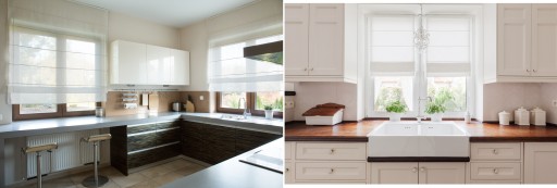 Stosujemy klasyczny materiał firanowy, jednolity. Bardzo dobrze układa się podczas zwijania rolety.