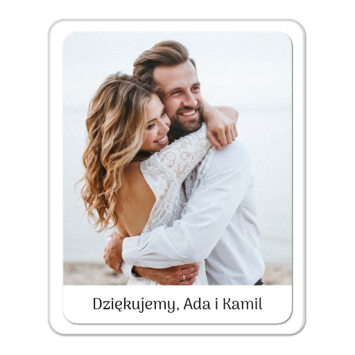 Na prostokątnym magnesie możesz umieścić dowolne zdjęcie i podpis. Magnes ze zdjęciem nadrukowanym na metalowej powierzchni został dodatkowo wzbogacony o przezroczystą pleksi. Nadruk nanoszony jest metodą sublimacji.