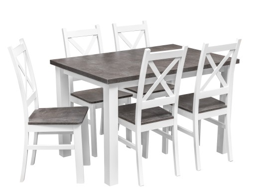 Liczba krzeseł na zdjęciu jest przykładowa. Z powodu użycia różnych procesów produkcyjnych, elementy stołu i krzesła mogą nieznacznie odbiegać od siebie kolorem, dotyczy to głównie elementów malowanych.
