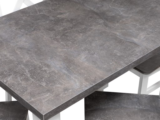 Solidny i kompaktowy zestaw stół + krzesła wykonane z drewna bukowego klejonego. Blat stołu wykonany został z płyty laminowanej wykończonej obrzeżem ABS. Grube nogi stołu sprawiają, że zestaw jest bardzo stabilny i trwały.