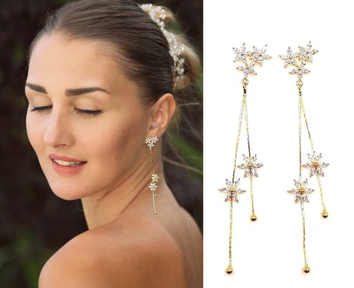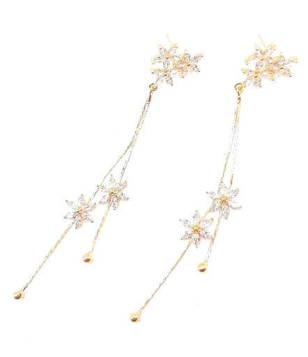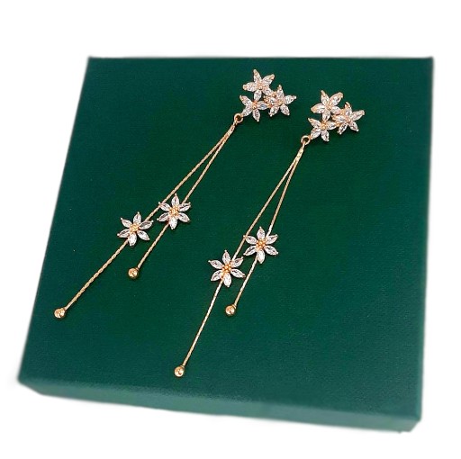 ДЛИННЫЕ СЕРЬГИ С ЦВЕТАМИ 9,5 СМ, ЗОЛОТАЯ СВАДЬБА