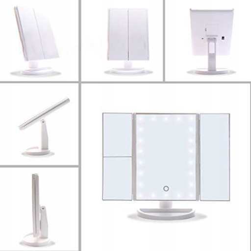Doskonałe lusterko kosmetyczne z powiększeniem. Wyposażone w aż 22 diody doświetlające LED po zewnętrznej stronie głównego lustra. Diody LED są uruchamiane dotykowo - wystarczy kliknąć w dowolnym miejscu lusterka aby je aktywować i rozświetlić sobie przestrzeń roboczą np. w trakcie wykonywania makijażu.