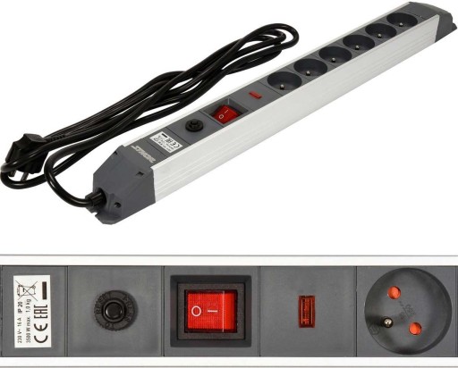 PRZEDŁUŻACZ - LISTWA ZASILAJĄCA W ALUMINIOWEJ OBUDOWIE Z OCHRONĄ PRZECIWPRZEPIĘCIOWĄ I PRZECIĄŻENIOWĄ