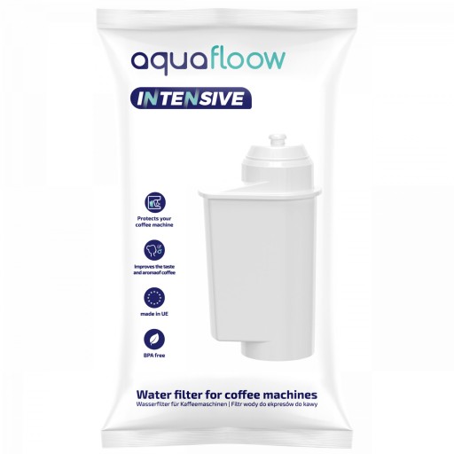 Filtr wody AquaFloow Intensive ma zastosowanie do wybranych ekspresów marek Bosch oraz Siemens. Zadaniem filtra jest oczyszczanie wody z nadmiaru osadów, a przy tym zwiększa on żywotność urządzenia.
