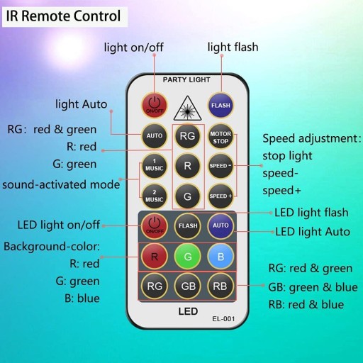 【Łatwa obsługa】 Możemy sterować światłem dyskotekowym ręcznie lub zdalnie. Pilot zdalnego sterowania może regulować włączanie/wyłączanie, prędkość silnika, kolory lasera i kolory tła LED. Światła dyskotekowe mają trzy tryby pracy;1, Auto (kolory światła zmieniają się automatycznie, tworząc romantyczną i relaksującą atmosferę) 2, Flash (kolory pojawiają się i znikają szybko), tworząc efekt błysku) 3, Aktywowany dźwiękiem (kolory oświetlenia zmieniają się w zależności od rytm otaczającej muzyki).