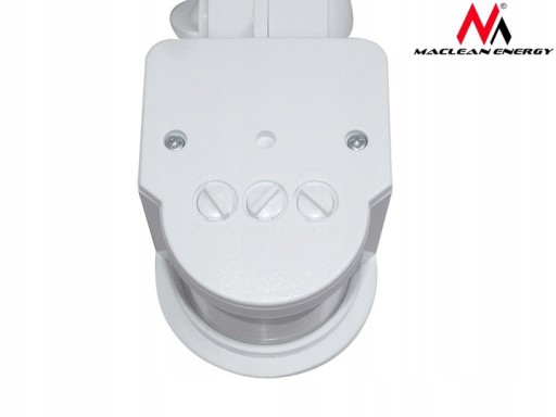 Głównym przeznaczeniem czujnika Maclean MCE25W jest automatyczne sterowanie oświetleniem, ale istnieje możliwość podłączenia do niego również innych urządzeń elektrycznych (np. elektryczne ogrzewanie, klimatyzacja, itp.), pod warunkiem iż odbiornik energii nie obciąży włącznika mocą większą niż 1200W (obciążenie rezystancyjne) lub 300W (obciążenie indukcyjne). Wszechstronne zastosowanie, do sterowania oświetleniem różnorodnych obiektów: - elewacji budynków mieszkalnych, dziedzińców, wejść, bram, zieleni ogrodowej - parkingów - ścian zewnętrznych budynków i innych obiektów architektonicznych - tablic i bilbordów reklamowych, witryn sklepowych - wielu innych obiektów, także we wnętrzach. Ścienny czujnik ruchu zmierzchu 180° MCE25W Urządzenie może działać zarówno w nocy jak i w dzień. Pokrętło TIME służy do regulacji czasu oświetlenia (od około 10 sek do 7 minut). Pokrętłem LUX ustawiamy czułość światła otoczenia (zakres od 3 do 2000 LUX). Gdy światło otoczenia jest niewystarczające i chcemy, aby urządzenie pracowało zarówno w dzień jak i w nocy ustawiamy pokrętło w pozycji dzień (ikona słońca). Gdy światło otoczenia jest mniejsze niż 3 LUX, pokrętło powinno być ustawione w pozycji noc (ikona księżyca). Pokrętło SENS służy do regulowania maksymalnego zasięgu (od 5-12m) w zależności od miejsca w którym znajduje się czujnik. Odległość zasięgu 12m zaleca się ustawiać w bardzo dużych pomieszczeniach.