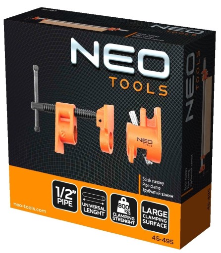 Ścisk rurowy 3/4" 45-496 marki NEO to ścisk śrubowy, przeznaczony do stosowania z rurami stalowymi DN 20/R o średnicy 3/4” i dowolnej długości. Trwałe oraz solidne narzędzie, którego siła porównywana jest z siłą docisku równą masie 800 kg. Składa się na dwa kluczowe elementy (końcówkę dociskową ze śrubą oraz blokująca barierę) Niezastąpione w pracach warsztatowych (szczególnie stolarskich) dla profesjonalistów i majsterkowiczów.