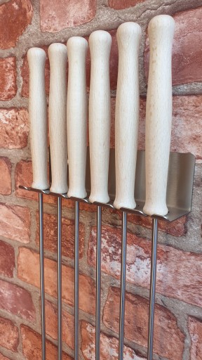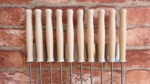- Rączka wykonana jest z naturalnego drewna bukowego, zabezpieczona woskiem przed brudzeniem i wilgocią.