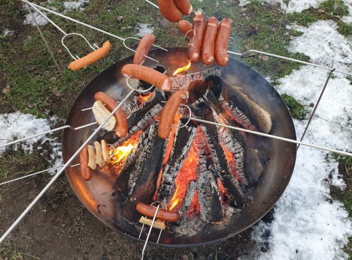 Odpowiednio wyprofilowany trzon oraz odwrotnie niż w widełkach tradycyjnych przyspawany widelec pozwala na pewne pieczenie kiełbasek bez obawy, że spadnie nam do ogniska.