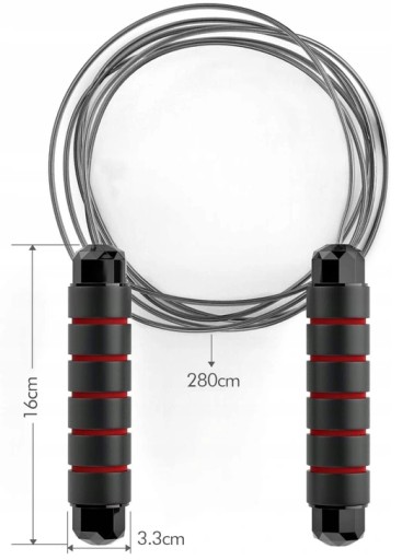 - Trwała skakanka jest wykonana ze stalowych drutów pokrytych mocnym materiałem PVC, dzięki czemu jest wytrzymała nawet po długim treningu.