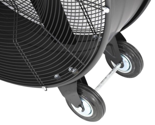 Wentylator ustawiony jest na solidnych podpórkach, które dodatkowo niwelują powstawanie drgań podczas pracy. Aby zwiększyć mobilność, wentylator posiada dwa koła transportowe pomagające w transporcie.
