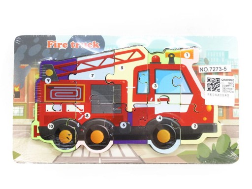 FANTASTYCZNA, DREWNIANA UKŁADANKA - PUZZLE DLA KAŻDEGO MALUCHA - przedstawiająca WÓZ STRAŻACKI !