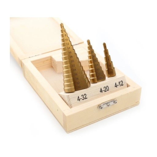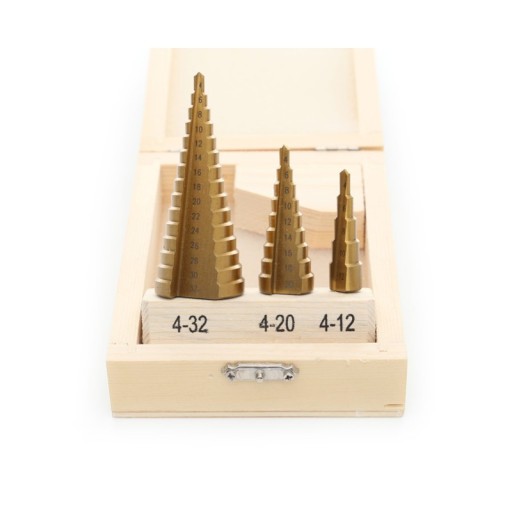 Wiertła stopniowe stożkowe 4-32mm ; komplet - 3szt.