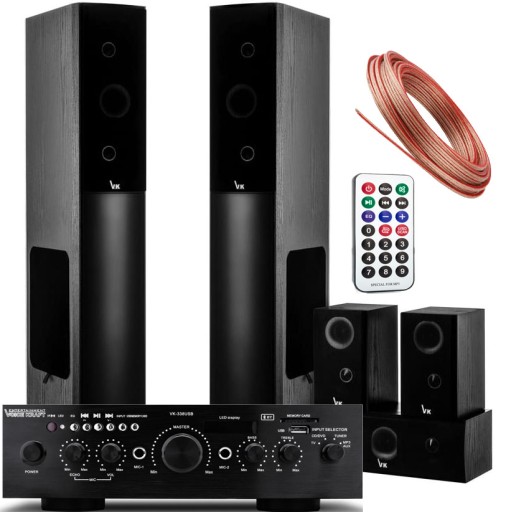 REWELACYJNY ZESTAW KOLUMN DO KINA DOMOWEGO ZNANEJ FIRMY VOICE KRAFT 5 KOLUMN + AMPLITUNER + OKABLOWANIE