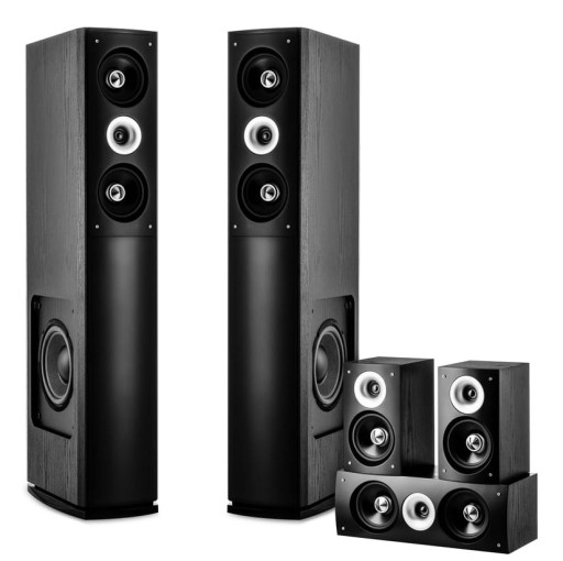 Cały zestaw to świetny wybór kolumn kina domowego.