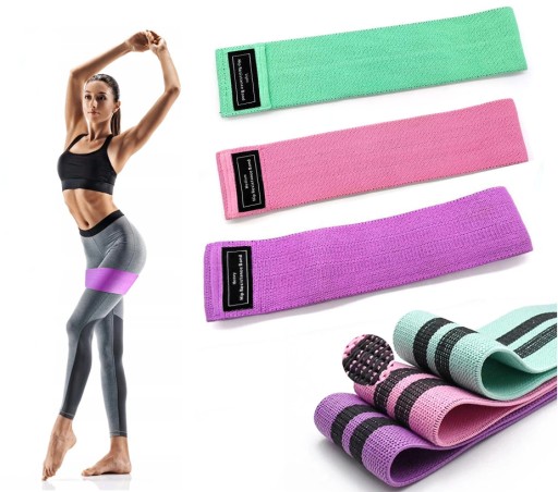 - Zestaw 3 gum do ćwiczeń o różnym stopniu oporu.