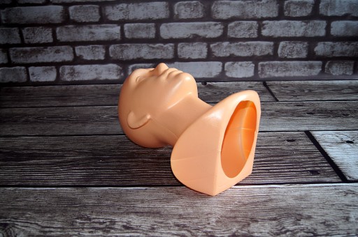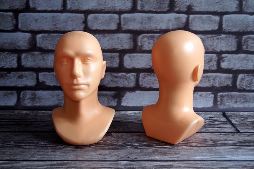 Głowa jest wykonana z bardzo mocnego tworzywa sztucznego w kolorze beżowym (naturalnym).
