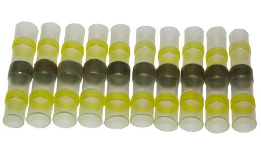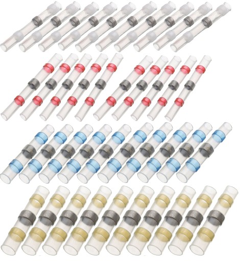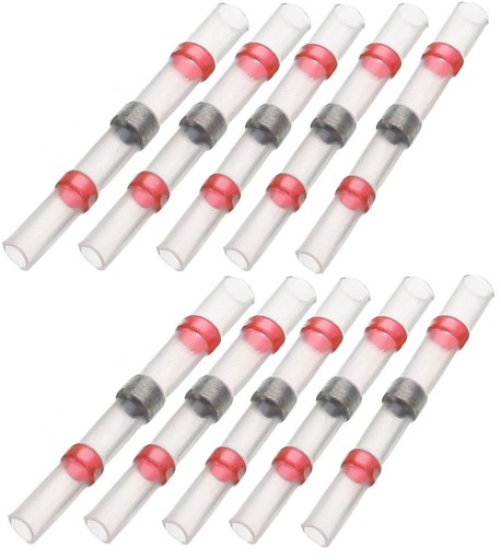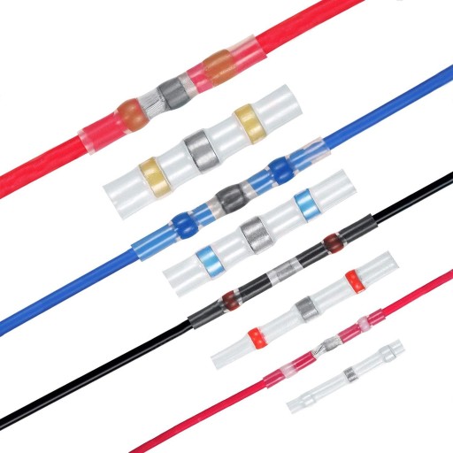 Zestaw szybkozłączek z cyną w rurce termokurczliwej do naprawy i łączenia przewodów.