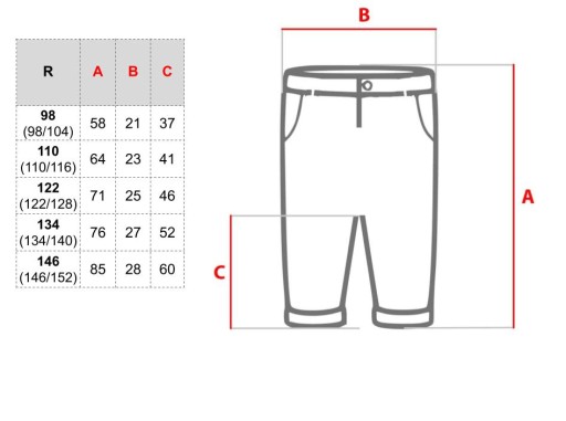 Przy zakupie proszę kierować się wymiarami spodni z tabeli!