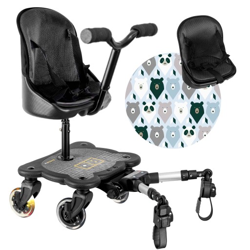 - Duża powierzchnia antypoślizgowa platformy redukuje ryzyko poślizgnięcia się dziecka na platformie oraz odblaskowe elementy dla dodatkowego bezpieczeństwa dziecka