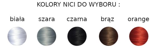 Kolor nici – możemy wykonać przeszycia oraz sznurowania wybranym przez zamawiającego dostępnym kolorem nici.